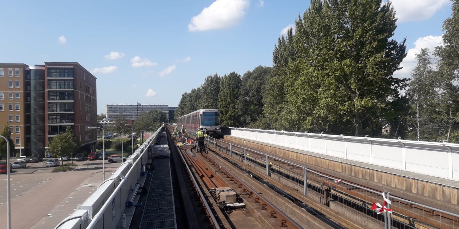 From Saturday 1 September 2018 to Saturday 6 October 2018, Strukton Rail will be working on the metro rails. The work will continue 24/7. We will replace the rails one by one, so that the metro can continue to operate during this period on one rail. Inconvenience to passengers will thus be limited. On Saturday 6 October 2018, both rails will be back in service.